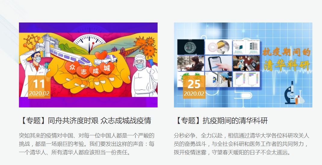 而最重要的,是报道中那些在关键时刻令人动容的清华人。从青年教师软件学院副教授杨铮发明在线教学“十大神器”,到95岁高龄的物理系教师张礼挑战在线教学,从环境学院教授张大奕武汉抗疫一线火线入党,到留守校园但心系抗疫前线父亲的年轻学生……“疫情期间,采访、写稿,再采访、再写稿,几乎成了每天生活的全部。”宣传部记者曲田是最早参与疫情报道的记者之一。“那段时光,也是我感觉离清华精神内核最近的时刻!”她感慨道。