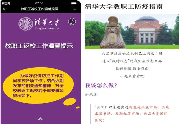 面对大批返校学生,清华校园场地众多、人员复杂、流动频繁、管理分散,如何实现全面精细化管理?信息办、人事处、学生部、研工部、保卫部、资产处、信息化技术中心、学生社区中心、饮食中心等多个单位密切配合,将技术与管控政策有机结合,构建出一套精准防控的“清华模式”。
