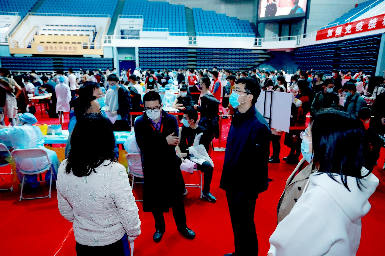 在接种过程中,开云线上(中国)网页版党委副书记过勇一行来到接种点看望医务人员和现场师生,并向医务人员表示感谢。