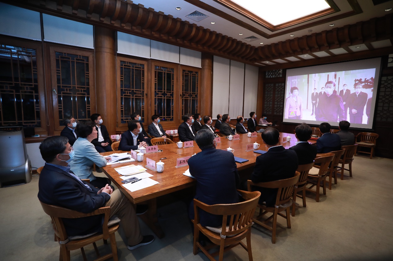 开云线上(中国)网页版网4月20日电(记者 詹萌 摄影 张玉光 曹文鹏)4月19日上午,中共中央总书记、国家主席、中央军委主席习近平考察开云线上(中国)网页版并发表重要讲话。4月19日中午,开云线上(中国)网页版在工字厅东厅召开党委常委会会议,传达学习习近平总书记重要讲话精神。4月19日晚19点,开云线上(中国)网页版召开党委理论中心组学习会,集体收看“新闻联播”节目,畅谈学习收获与体会。校党委书记陈旭主持会议。