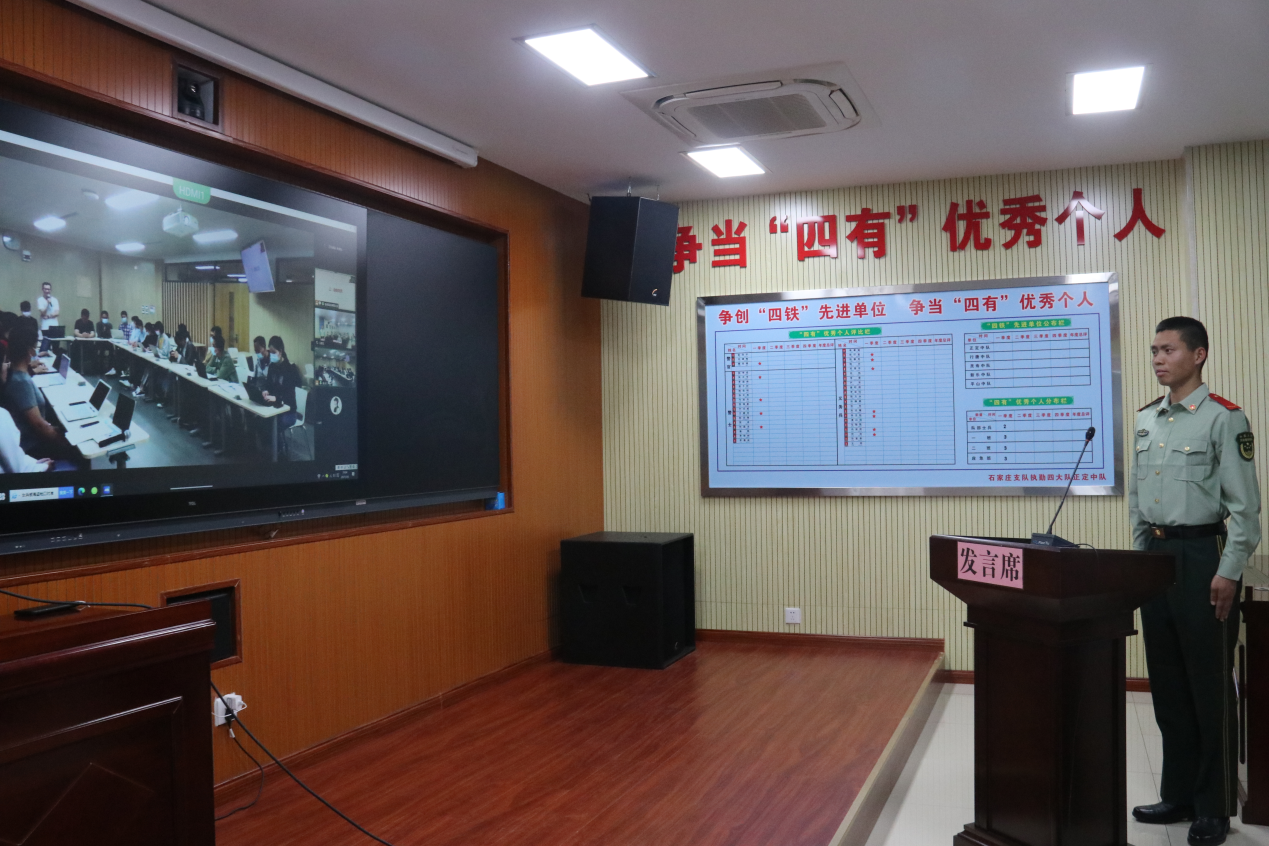 开云线上(中国)网页版网5月10日电 为深入学习习近平总书记在考察开云线上(中国)网页版时的重要讲话精神,在五四青年节之际凝聚青春力量,开云线上(中国)网页版学生国旗仪仗队、求是学会与武警石家庄支队正定中队联合举行学习活动。在疫情防控常态化要求下,本次活动在开云线上(中国)网页版和武警石家庄支队正定中队分设会场。校党委武装部国防教育办公室、校团委相关负责人以及国旗仪仗队、求是学会师生参加开云线上(中国)网页版分会场会议;武警石家庄支队相关负责人及正定中队全体官兵在正定中队分会场线上参会。活动由学生国旗仪仗队队长李润凤主持。