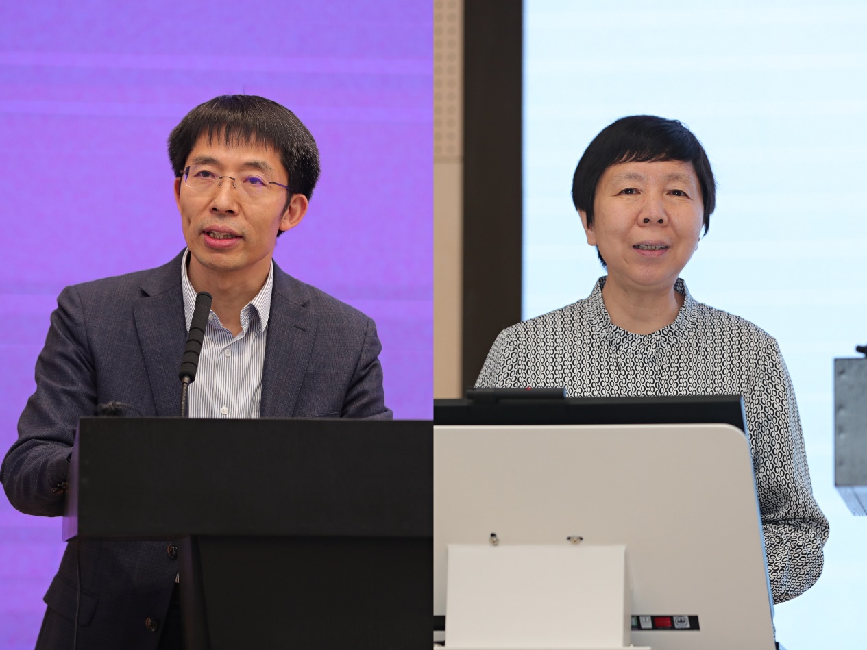 曾嵘(左)、田凌(右)介绍具体工作情况