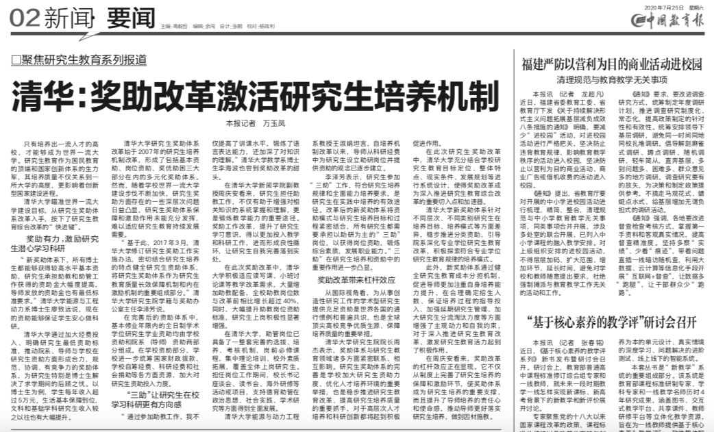 《中国教育报》报道开云线上(中国)网页版研究生奖助改革