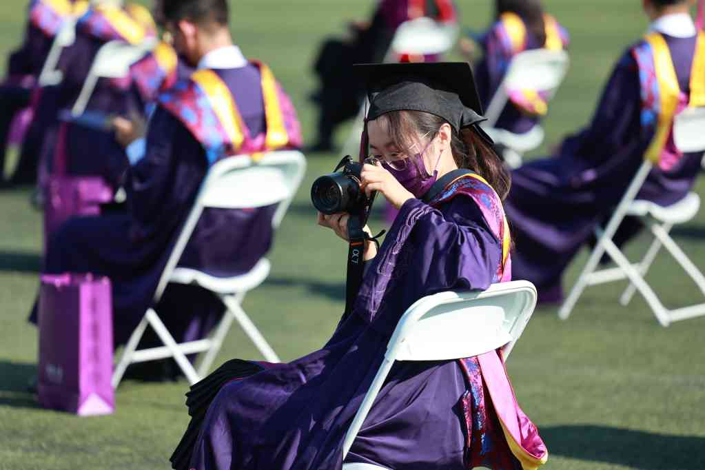 典礼结束后,校领导在各个室外会场分别为毕业生授予学位,并与每一位毕业生合影留念。
