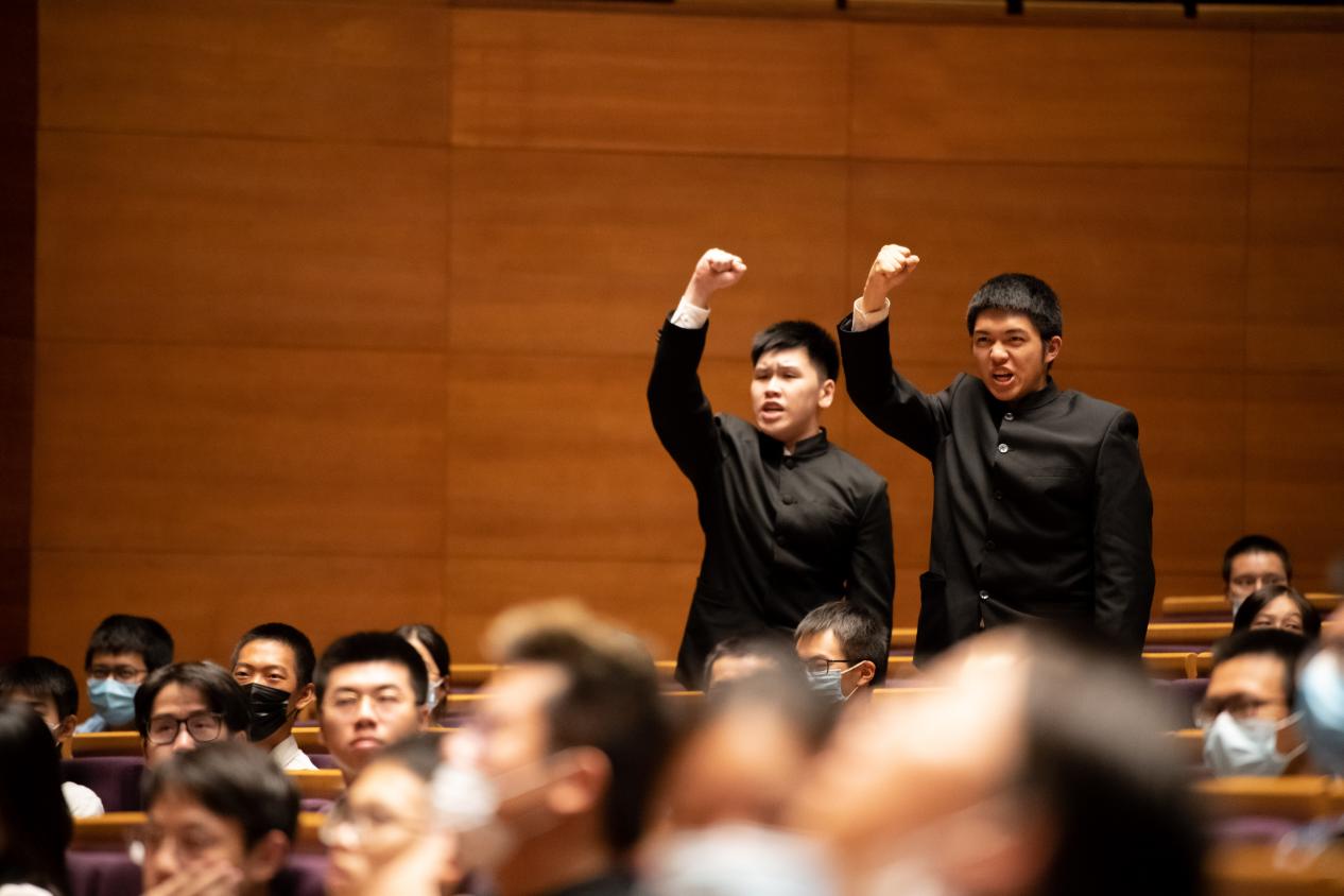 10月3日最后一场演出结束后,剧组演员带领全场观众合唱《我和我的祖国》。大家挥舞着手中的国旗,向剧中为“两弹一星”事业奉献青春的科技工作者致敬,也为即将召开的党的二十大送上贺礼。部分校领导出席观演,并与同学们亲切交流,共同回顾老一辈科技工作者的爱国精神、科学精神、奉献精神和人格魅力,同时深刻领会中国特色社会主义进入新时代十年来党和国家取得的历史性成就,激励大家铭记历史、心怀感激、汲取力量、踔厉前行。