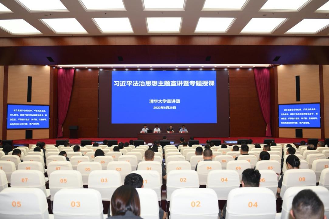8月28日,宣讲团一行在贵州省高级人民法院开展习近平法治思想主题宣讲暨专题授课活动。活动以视频形式举行,贵州省高级人民法院党组成员、副院长邓德禄,党组成员、省纪委监委派驻省高院纪检监察组组长赵松及全省三级法院干警参加。贵州省高级人民法院党组成员、政治部主任李江波主持活动。