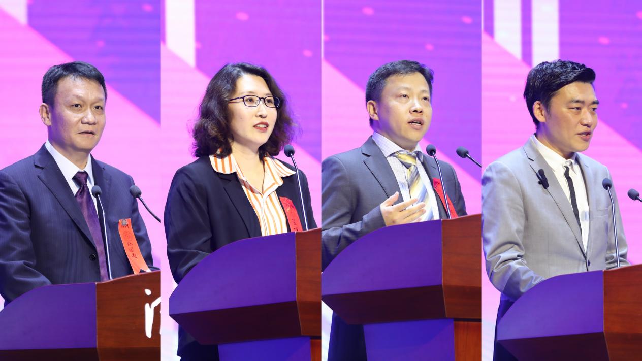 1999级校友代表陈迎亮、王瑾、张川、郝凝辉(从左至右)发言