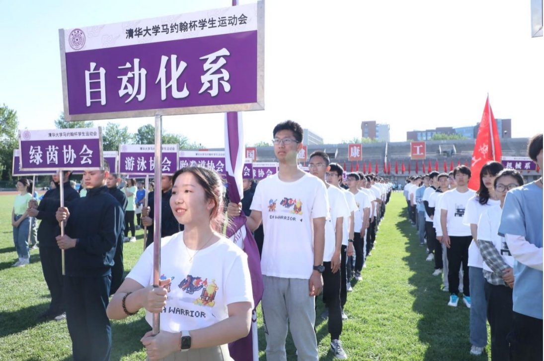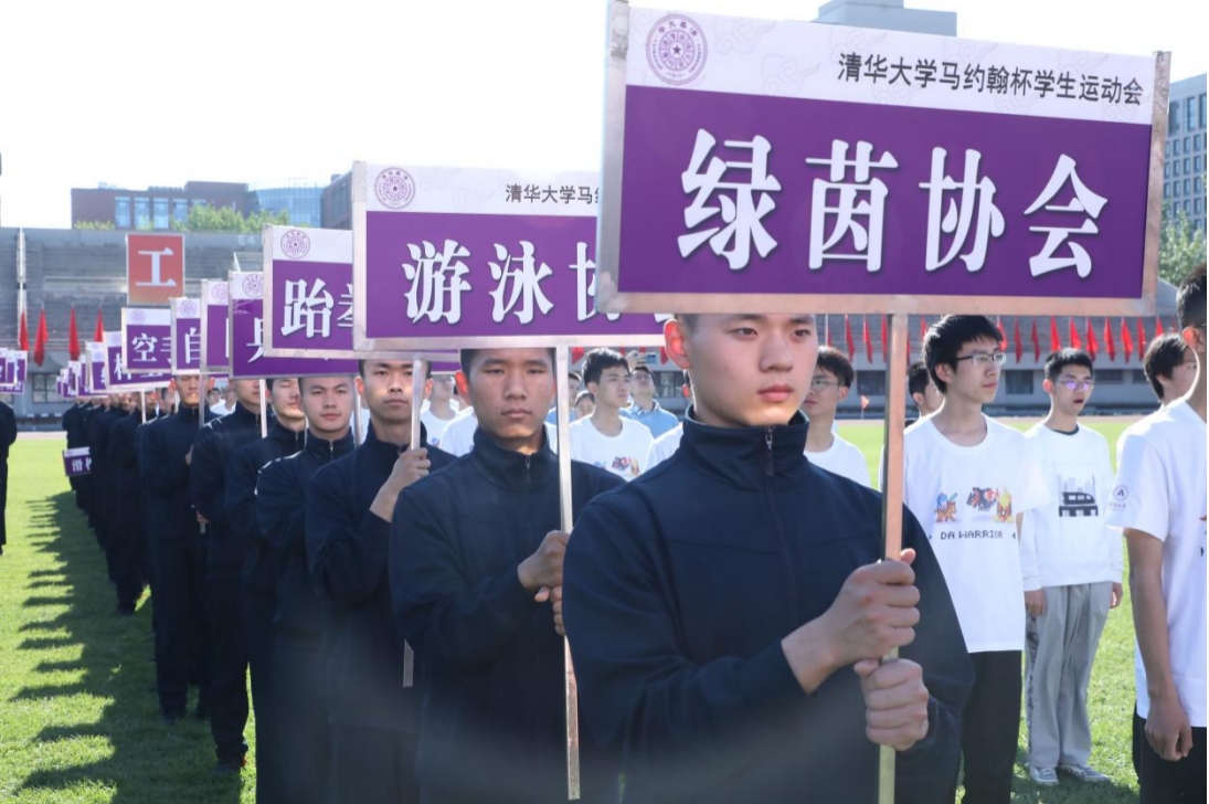 早上8:00,国旗仪仗队、校旗方阵、裁判员方阵、体育社团方阵、各院系运动员方阵和校友代表方阵在引导员、旗手和领队老师的带领下,依次进入东大操场,他们迈着整齐划一的步伐,喊着响亮的口号,展现出清华人的激情与活力。全体观众也以高昂的情绪,为各个方阵鼓掌喝彩。