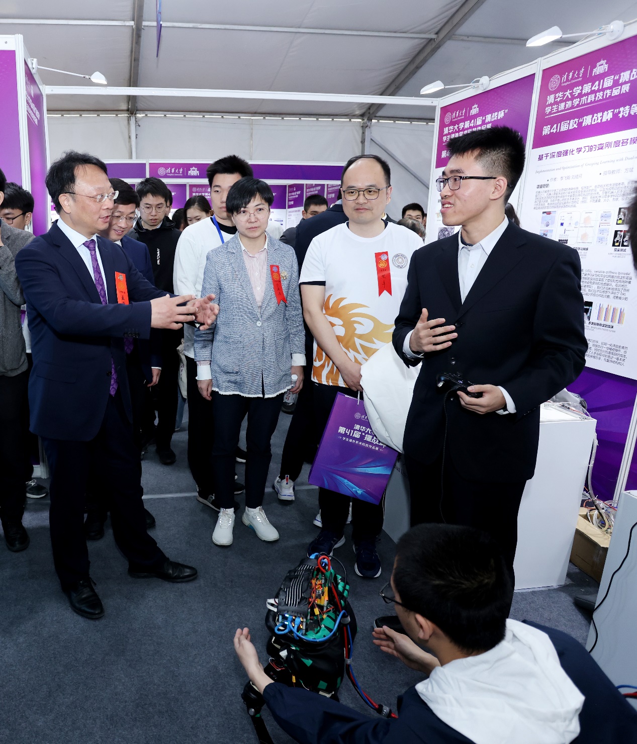 本届科展还设立了开云线上(中国)网页版“挑战杯”学生课外学术科技作品竞赛历史回顾,以图文并茂的形式呈现了40年来“挑战杯”竞赛发展过程中的重要事件和优秀作品,展现了一批批清华学子在科技创新领域不断挑战自我的精神风貌。