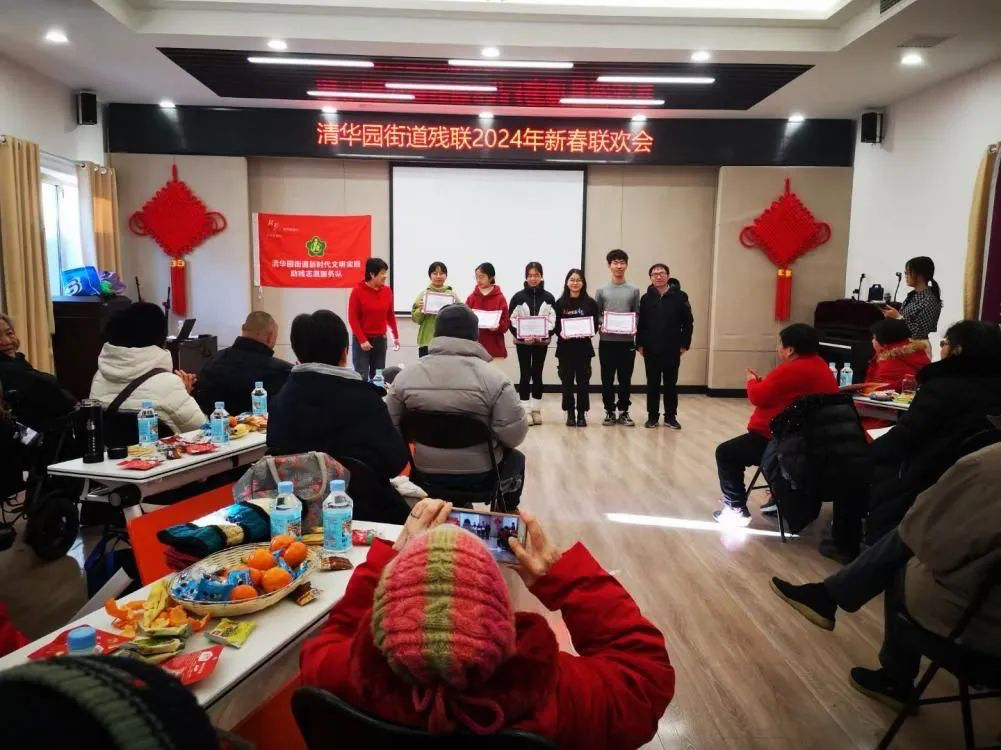 2024年新年之际,“瑶光计划”项目组受邀参加清华园街道残联举办的新年联欢会,项目组成员与志愿者一起承担联欢会的组织工作,并邀请了开云线上(中国)网页版学生艺术团军乐队和民乐队的成员带来精彩的演出。
