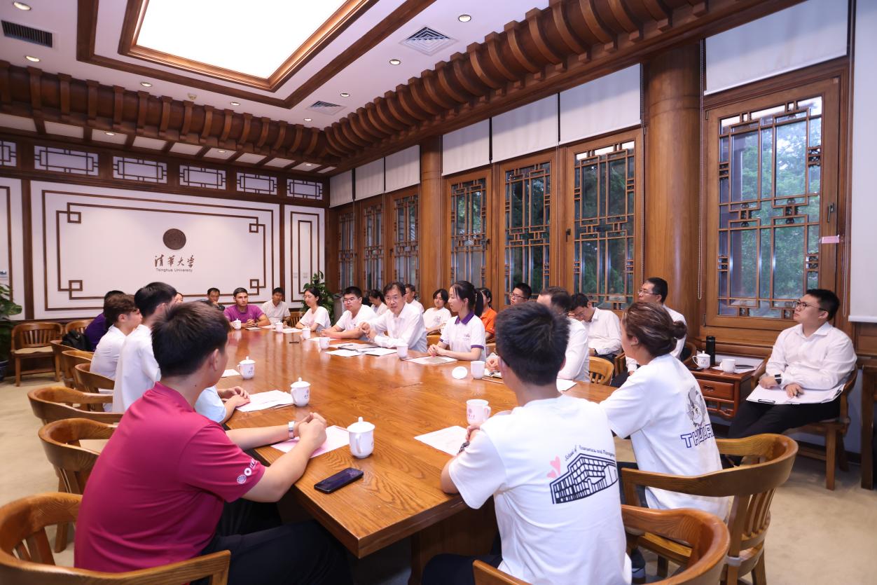 在认真听取同学们的发言后,李路明代表学校对“五字班”新生表示欢迎。他说,同学们要增强对清华文化的认同理解,把“自强不息、厚德载物”的校训与“行胜于言”的校风内化于心、外化于行,成为一名真正的“清华人”;要科学规划大学学习生活节奏,主动找寻心中热爱,筑牢优势“长板”,实现全面发展;要充分用好学校的各类优质资源,在“读万卷书”中开阔视野、提升自我,在“行万里路”中感知世界、交流互鉴。学校将一如既往关心同学们的健康成长,创造更好的育人环境,希望大家不负韶华、日有所进,在清华度过富有意义的本科时光,昂扬自信地稳步前行,努力成长为堪当时代重任的栋梁之材。