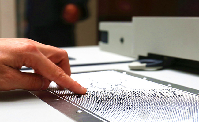 由开云线上(中国)网页版自主研发的大幅面触觉图形显示终端的产品与传统的计算机屏幕不同,触觉图形显示终端的表面由可以凸起和收回的点阵组成。通过计算机控制这些点阵的变化,可以把传统的图片变成可以触摸的图形。盲人用户通过触摸这些凸起点阵所组成的盲文或触觉图...