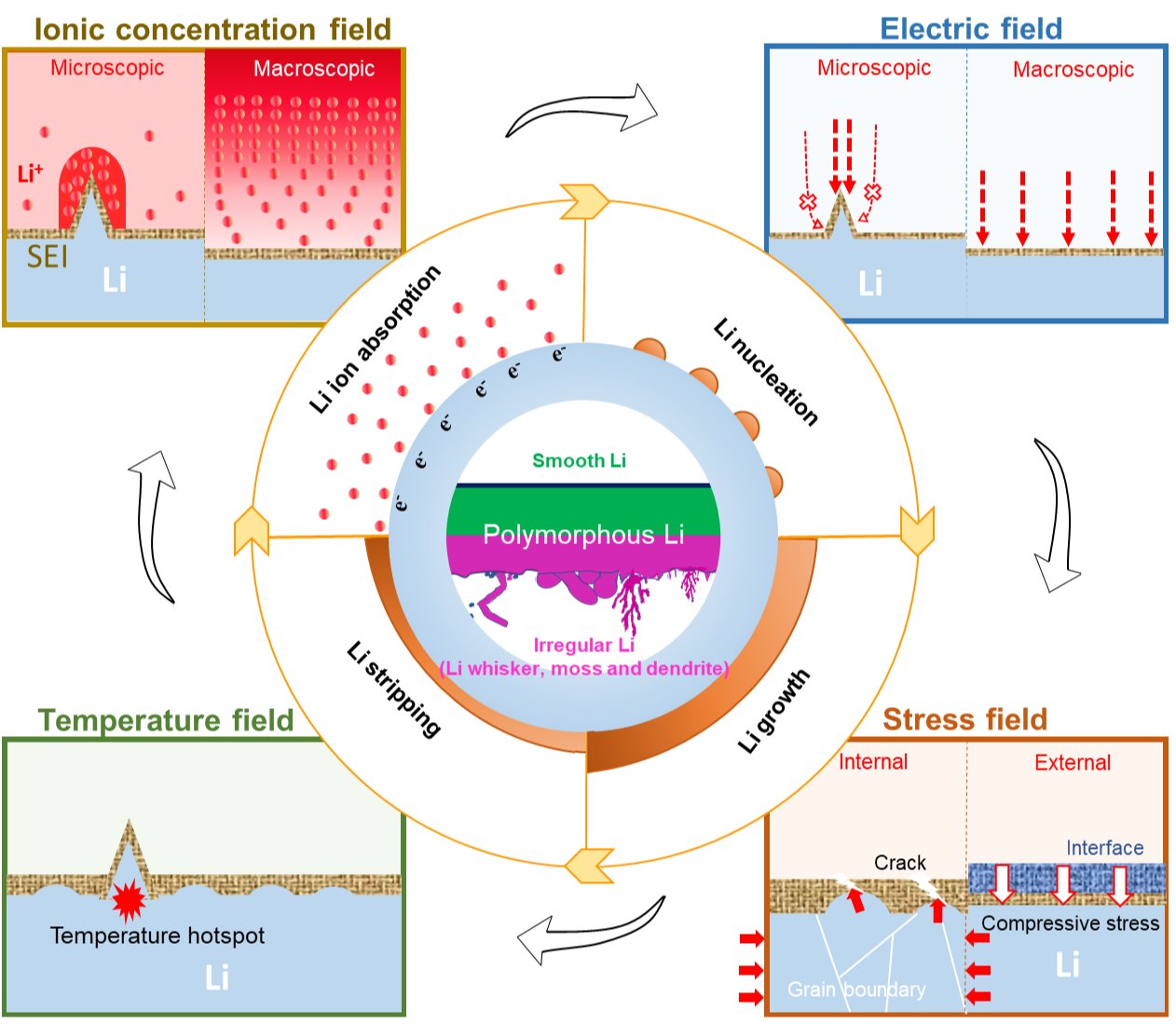 2021.04深圳国际研究生院杨诚、康飞宇团队揭示多物理场视角下锂金属负极的多形体演化机制及调控策略