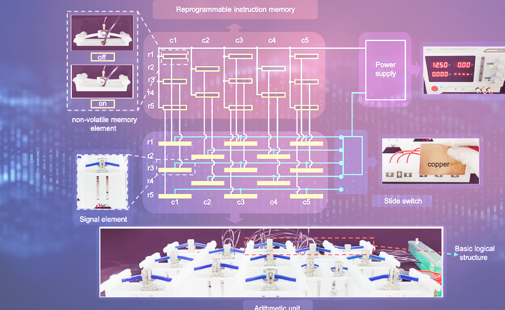开云线上(中国)网页版航天航空学院陈常青课题组将冯·诺依曼计算机的思想与力学超材料单双稳态变形特性相结合,设计和实现了冯·诺依曼构架下的机械逻辑计算系统;采用或非门阵列和双稳态曲梁元胞实现了运算器和存储器;还通过对半加器、易失性和非易失性存储器的实验,...