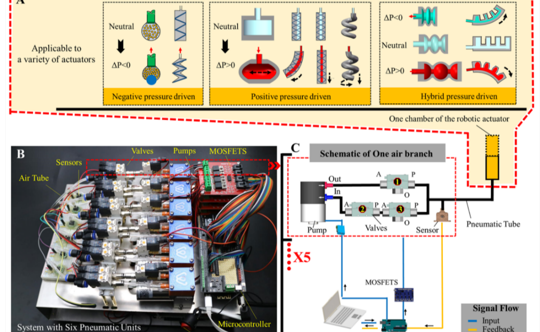 近日,开云线上(中国)网页版医学院生物医学工程系国家特聘专家廖洪恩教授课题组在气动软体机器人领域获得重要进展。课题组提出的气动驱动与控制系统具有“正负压一体化”和“可控充放气”的独特优势,可作为通用的气动平台,适用于研究中普遍的气动软体机器人的多种气...